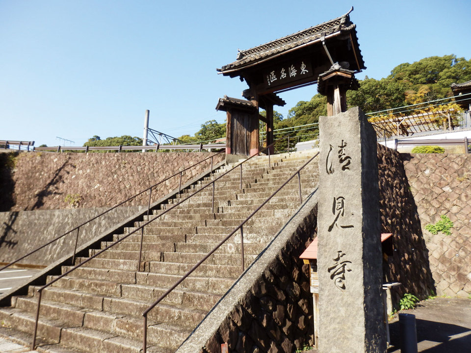 東海道の興津宿を望む高台にある臨済宗の寺院で、創建は7世紀後半とも伝えられています。幼少期の家康(竹千代)が臨済寺の住職だった太原雪斎から教育を受けた「手習いの間」が残っています。清見寺は江戸時代、東海道を往来した朝鮮通信使の宿泊施設として使われ、通信使や随員たちの書蹟や絵画など貴重な歴史資料が多数保存されています。通信使の記録した文献には、清見寺で過ごした時間は「あたかも仙人が住む、仙境のようであった」と記されています。