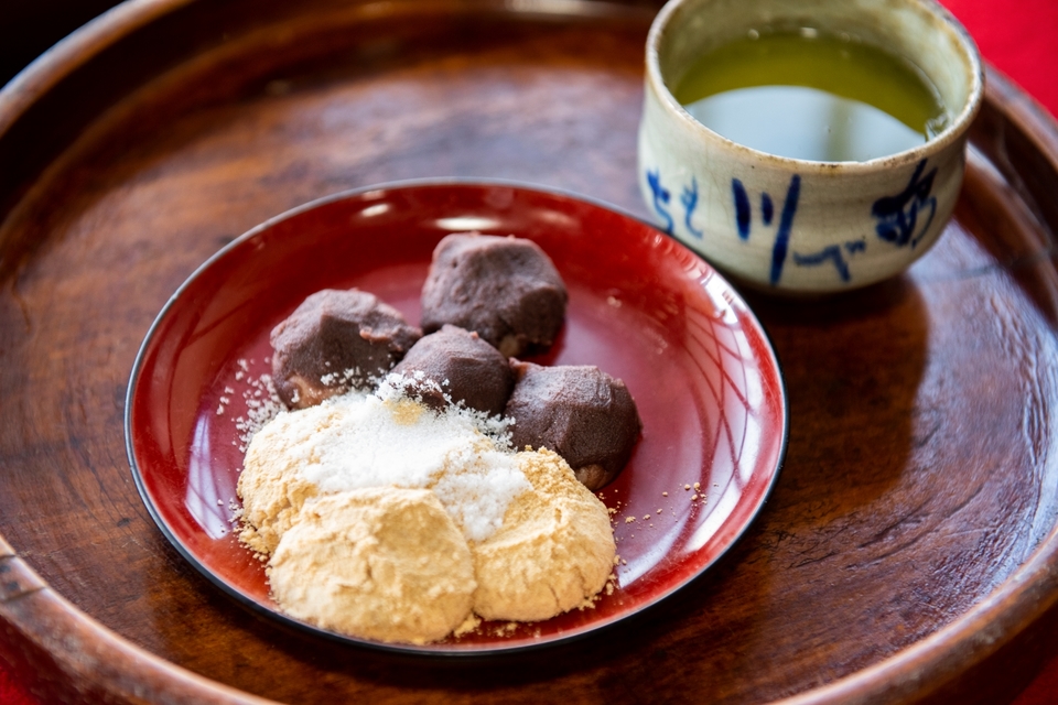 This specialty of Fuchu-shuku passed down since olden times is a confection made by sprinkling kinako (roasted soybean flour) onto freshly pounded mochi (rice cake) and topping it with white sugar. It is said that when Tokugawa Ieyasu stopped at a certain tea house in the early Edo period (1603 - 1868), the owner used kinako to resemble gold dust, and presented the dish to Ieyasu as Abekawa kinnako mochi, a play on words combining kin (gold) and kinako.