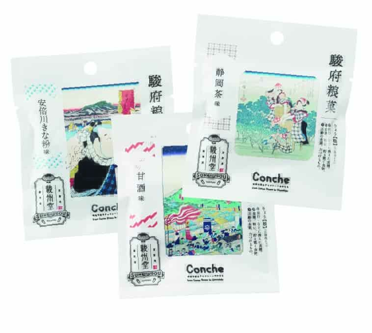 在江户时代,已有巧克力传入长崎的记录。骏府粮菓是以“江户时代的贮古龄糖(巧克力)”为原型,为了像弥次先生和喜多先生那样的徒步旅行者开发的“口袋饭”。这是与源自江户时代的食材混合而成的巧克力点心。